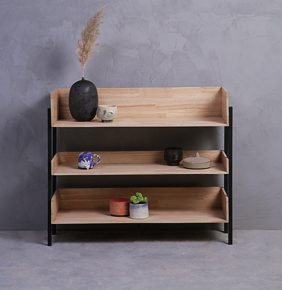 This versatile storage rack is expertly constructed using rubberwood and mild steel, ensuring both sturdiness and a sleek aesthetic. Organize your space efficiently with this practical addition. Order now for a clutter-free and stylish solution!